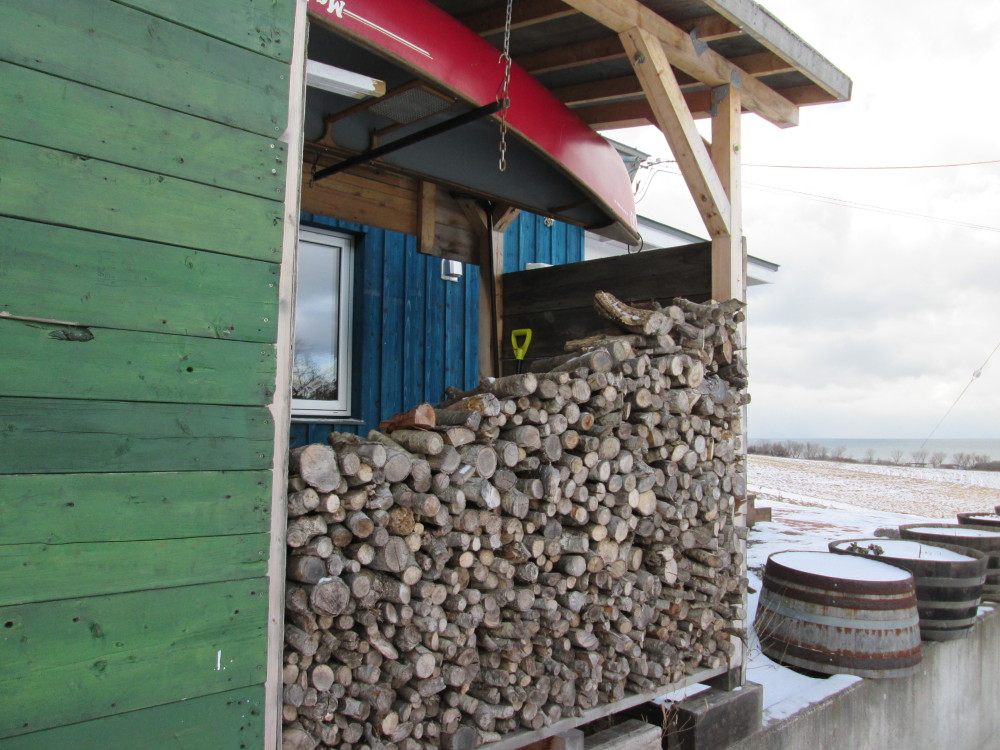 出番を待つ大きな割り薪。