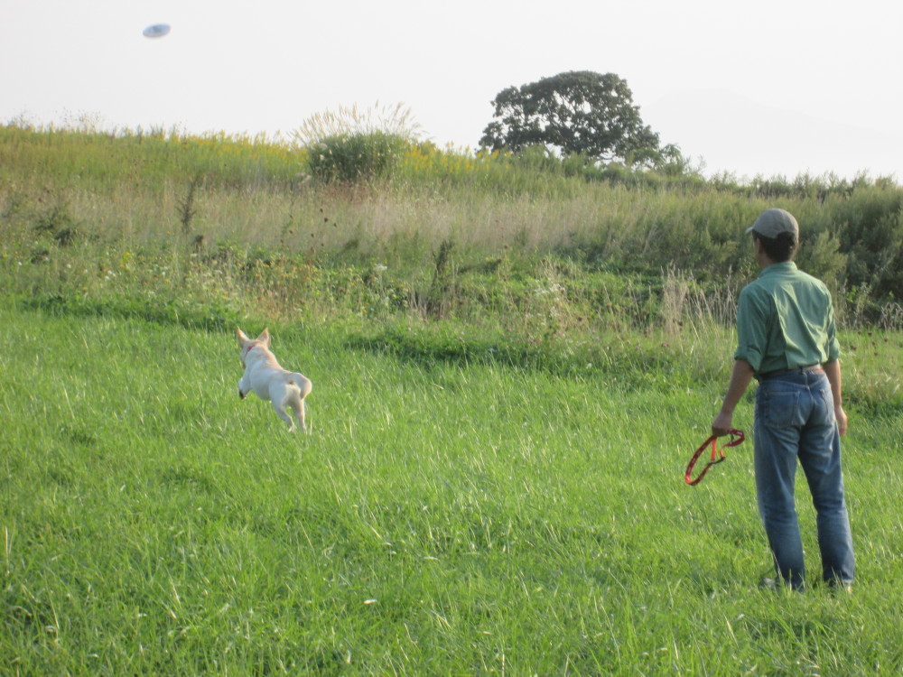 一休みをしてから、家のまわりの草原で遊びました。