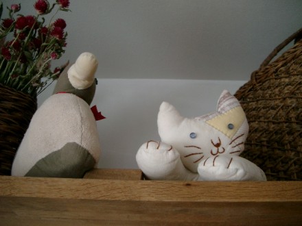 30年以上も前に、お世話になった知人からいただいたものです。昨年の秋にその知人が来店されて、懐かしそうにぬいぐるみと再会されていました。