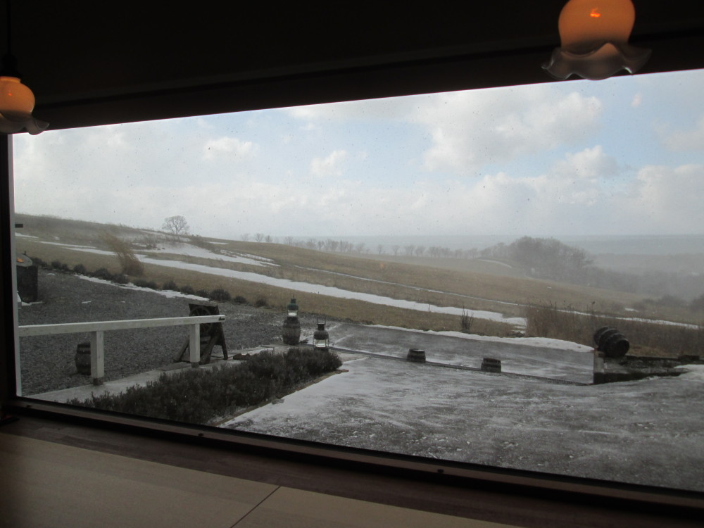 昨日まで雪解けで牧草畑が見え始めたのに、また冬に逆戻り。