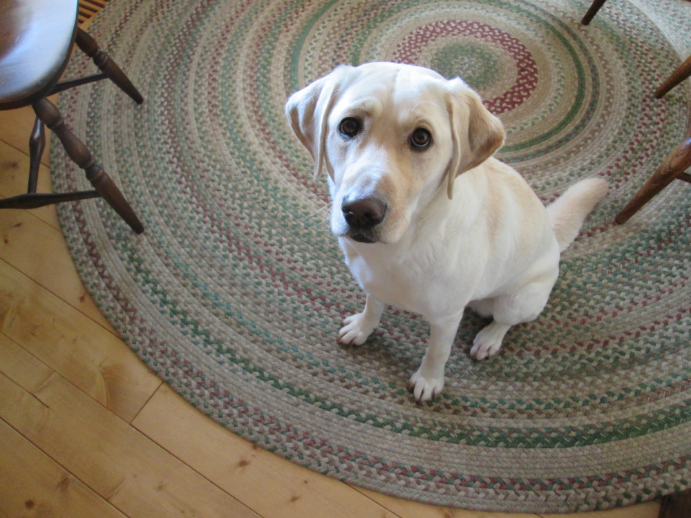 リンゴを切る音を聞きつけて待っているふくちゃん。お昼のおやつ。