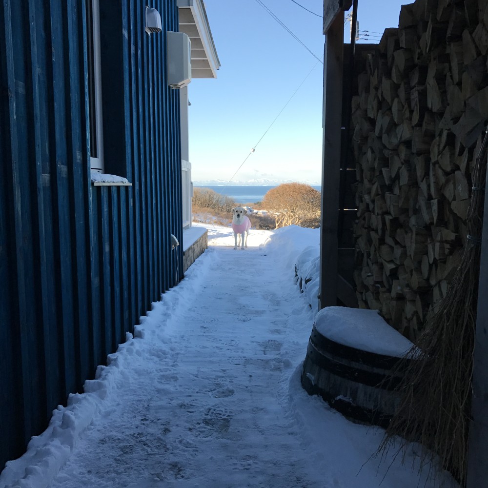 雪あそびから帰ってきて。ところで、首の下のたるみ。なにコレ?