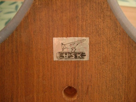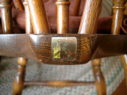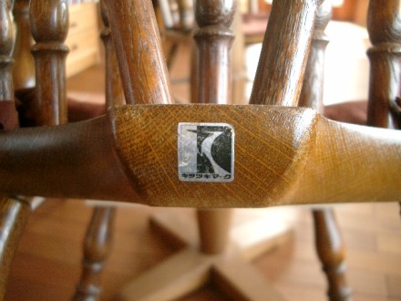 椅子についているシールです。順に古く(?)なっていきます。1番目と2番目には座面の裏側に番号が付いていて、製造年が分かります。三番目と四番目は番号がなく正確なところは不明です。一番目のシールの椅子で1975年、2番目で1970年と思われます。3と4番目のシールの椅子はそれ以前で、50年以上も古いものなのかもしれません。