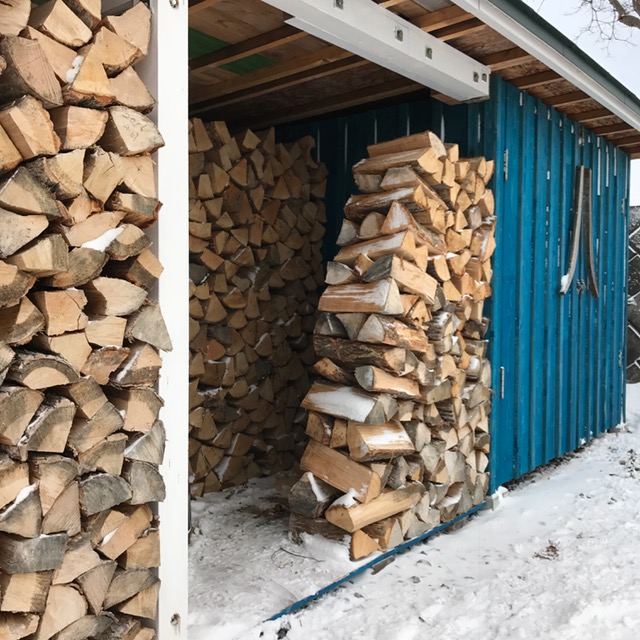 古い薪から運んでいると、かくれんぼには持って来いのすき間ができました。