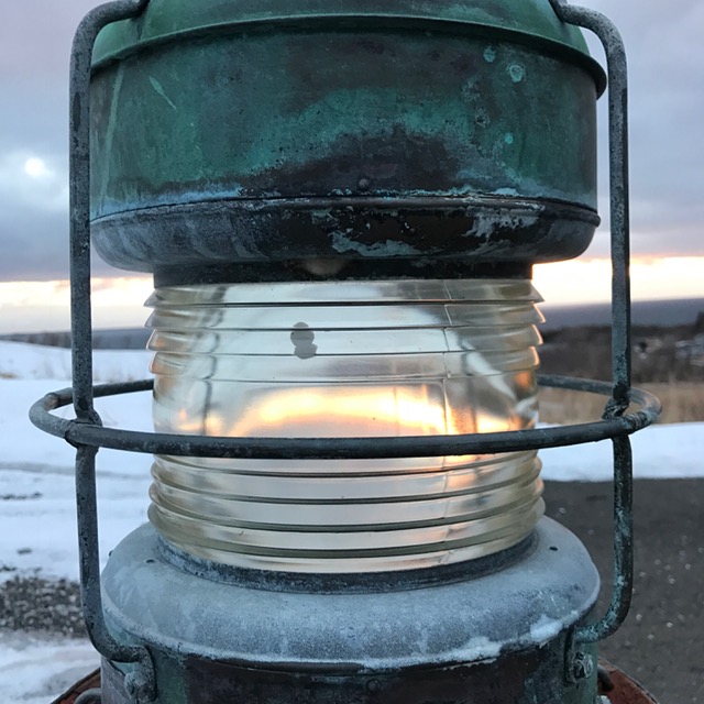 日没直前の夕日をうけて、灯油ランプに火が灯っているように見えました。