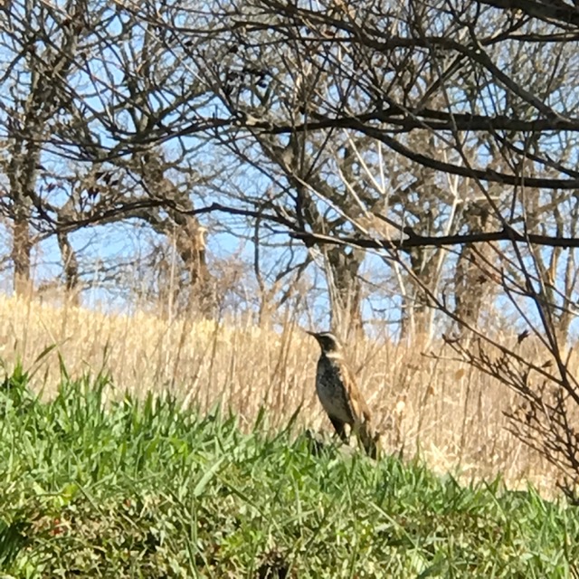 裏の畑にツグミがちょこちょこ。