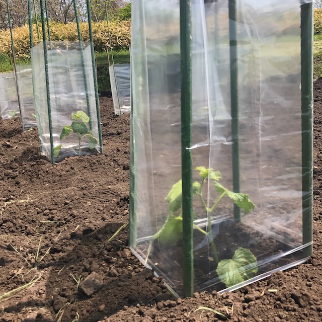 苗は、キュウリ、ピーマン、ナス、ミニトマトのあいこ。