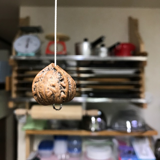 背丈よりも高い所にぶら下がっているので、くるみに替えてみました。