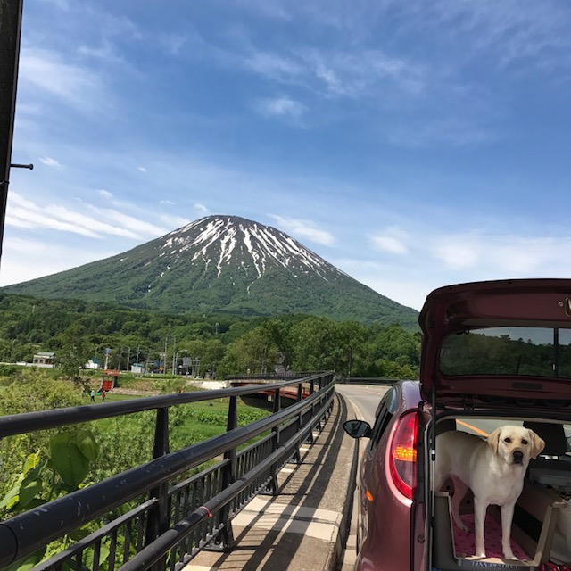 途中、京極・ふきだし公園近くの目名橋からの羊蹄山。