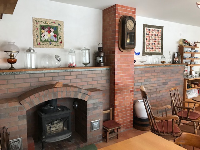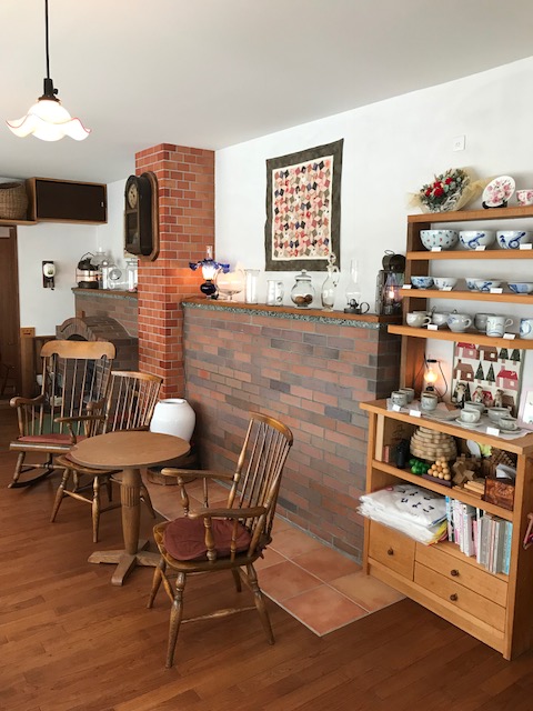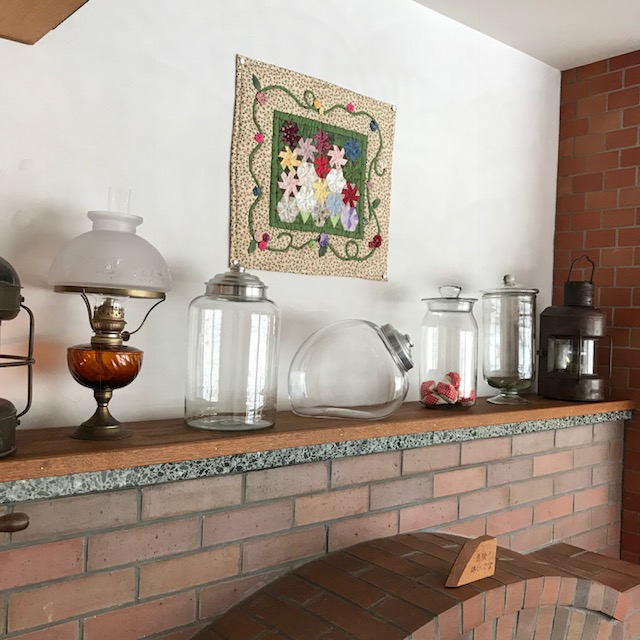スキのガラスに、和風と華やかなキルト。