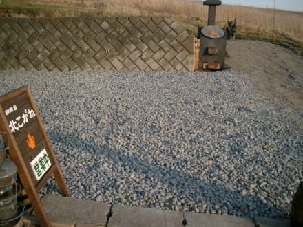 駐車場は元通りに戻りましたが、砂利が落ち着くまでザクザクします。少し砂利にタイヤが埋まりますが、はまって動けなくなることはありません。アクセルをゆっくり踏んで移動してください。