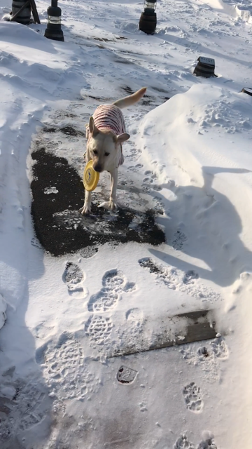 セーターを着ても寒いのか、早々に引きあげてきます。