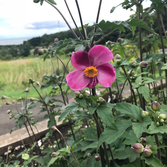 雨上がりのきょう、秋明菊の花が一輪咲きました。