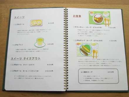 このメニューは北こがねに協力してくれている知人や友人や家族などによって作られています。「このメニューもマスターが作ったんですか?」とよく聞かれます。「私はプロデュースと製本をしただけです。作ったのはお店に関わるたくさんの人たちです」と答えています。メニューはお店のキャラがにじみ出るものだと思います。