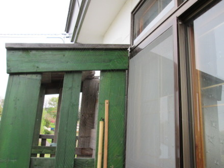 今朝は掛けてある棒の手前に立派なクモの巣ができていました。きっとクモの嫌がらせです。棒の上部の斜め左上に巣の中心があり、緑の板の前面が見えやすいです。一晩かけて作ったのでしょうか。寝起きでボーっとしていたので網にかかるところでした。直前に気付いてしっかり目が覚めました。明日の朝は気をつけて棒をとりに行こうと思います。