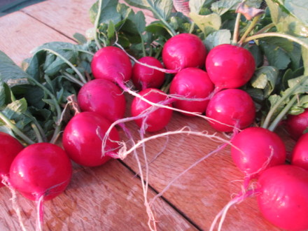 このラディッシュでピクルスを作ろうと思います。生でかじるとちょっと辛いですが、ピクルスにすると美味しくなりそうです。葉はみそ汁に入れて食べます。