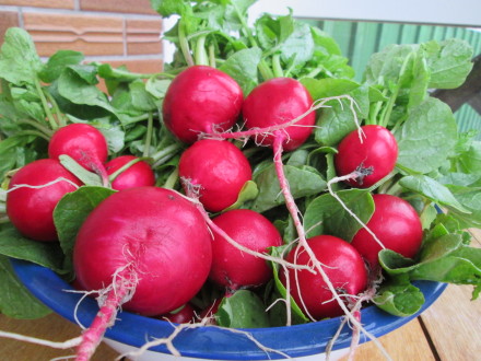 ピクルスを作るので、畑から大きめのラディッシュを収穫してきました。昨日の小雨の中でしたが、美味しそうに育っていました。