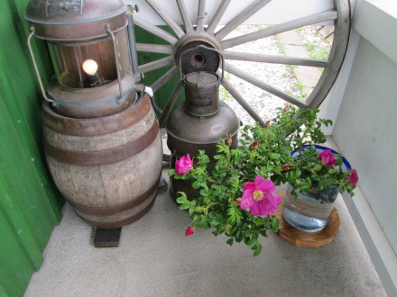 お店の裏のハマナスが大きな花をつけています。ハマナスの花の香りもします。