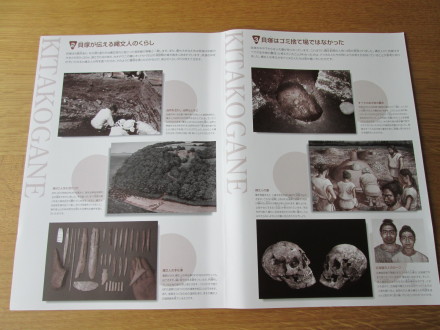 パンフレットは二種類あって、「縄文の森」のパンフレットでは北黄金貝塚の遺跡の説明がされています。二つ目の「縄文の森」では、復元された落葉広葉樹の森の案内が載っています。ともに公園の情報センターに置かれているものです。