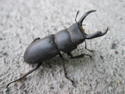 ちびクワガタです。玄関に向かってゆっくり歩いてきました。夏ですね。