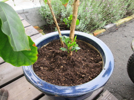栄養のある土に替えたことと、木を害虫から守るためです。