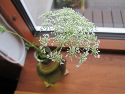 にんじんの葉に似ているのでそう呼ばれているようです。小さな花の集まりのきれいな花です。お店の周りの草原でたくさん咲いています。