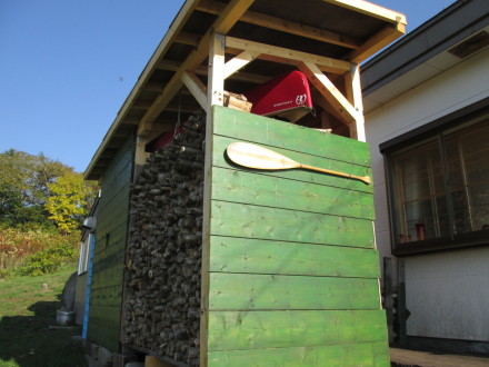 カヌーの小屋も兼ねているので、パドルを表札としてつけました。