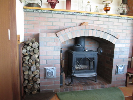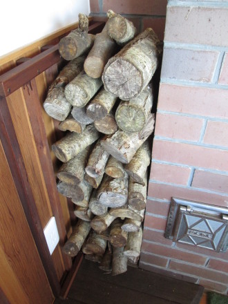 準備完了!たくさん薪が積んであると、焚いていなくても暖まります。