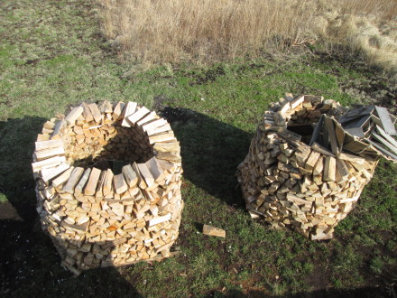 日中の雨でずぶぬれになった薪は、その後の風でしっかりと乾いていました。