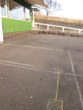 チョークでできたテラスを歩いてみたり、離れて見てみたり・・・・と。いろいろやってます。