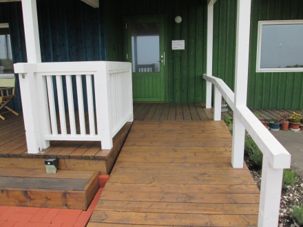 手すりは高さ70cmで縦棒はありません。