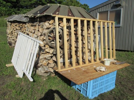 作業中。ペンキはテラスと同じサドリンエナメルのスペシャルホワイト。