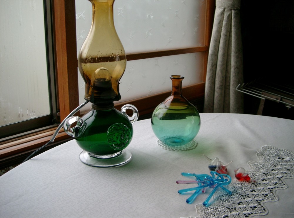 (ガラス、キルトの布、船燈の金属、