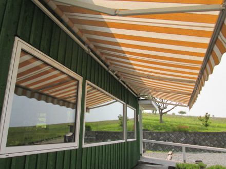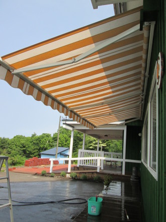 昨日、風が弱くて日が照っていたのでオーニングの水洗いをしました。