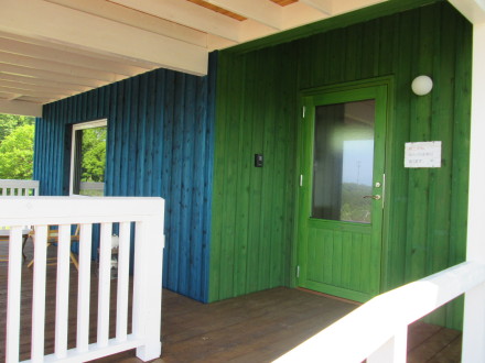 ところが設計の段階で、お店と同じ壁面であることからアカシア(緑色)に変更しました。