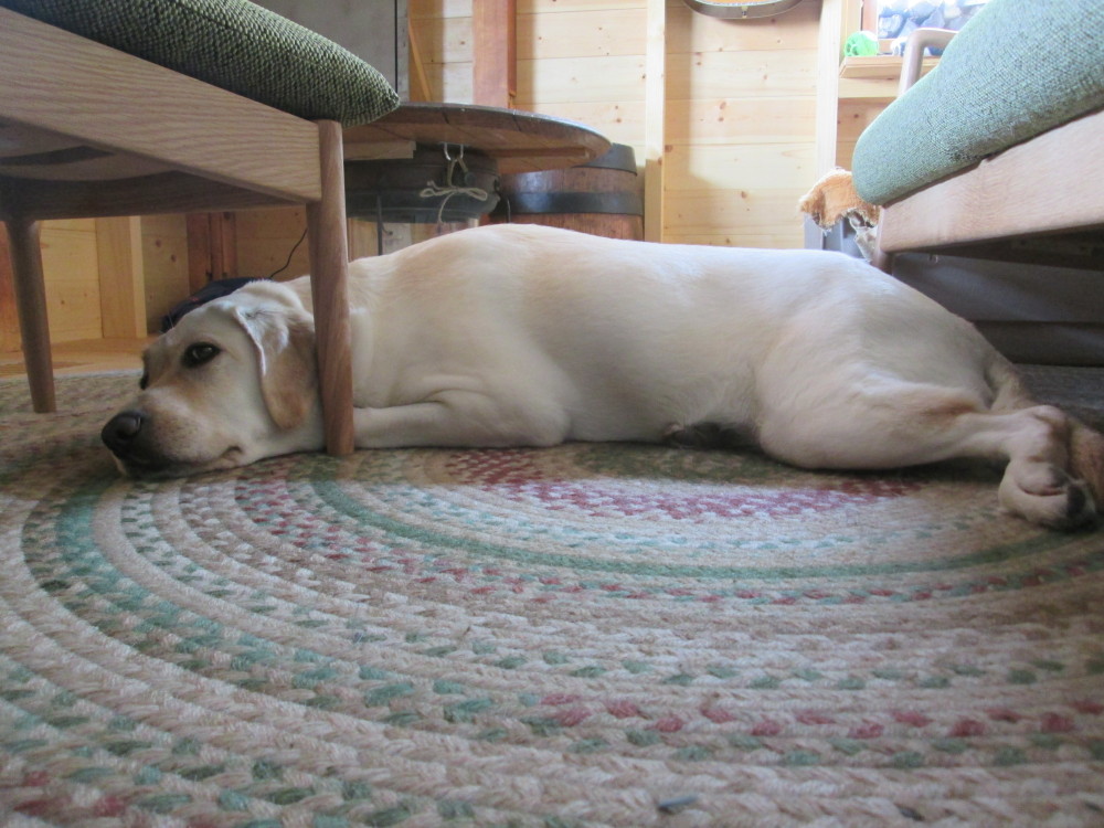 朝目覚めたときに、夏の朝は薪ストーブの仕事がないのでもうちょっと寝てられる~