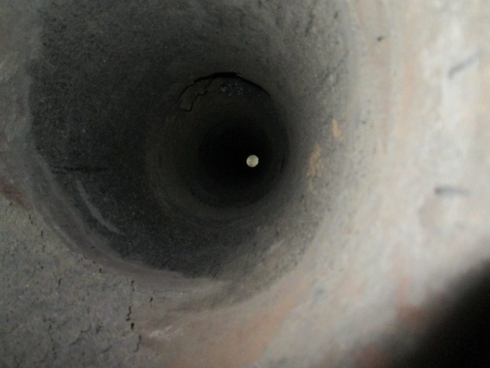 - 煙突の管の上をのぞくと。上部の穴がぱきっと見えるので、ススの詰まりはなし!
