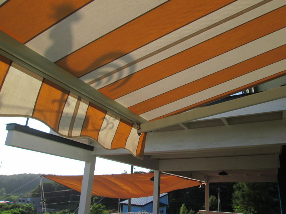 オーニングにできた風見鶏の影に、夕陽の動き(季節の移りかわり)を感じました。