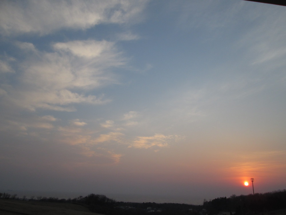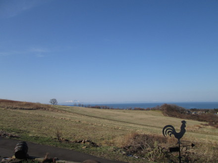 今日の縄文の丘は、噴火湾の対岸から冷たい風が吹いています。まだ日が差していますが、雪が舞いそうな気配。