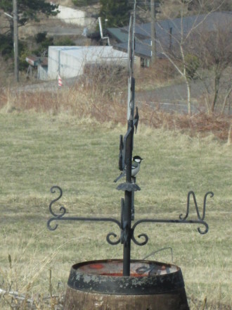 そんな中、珍しく風見鶏にシジュウカラがやってきました。